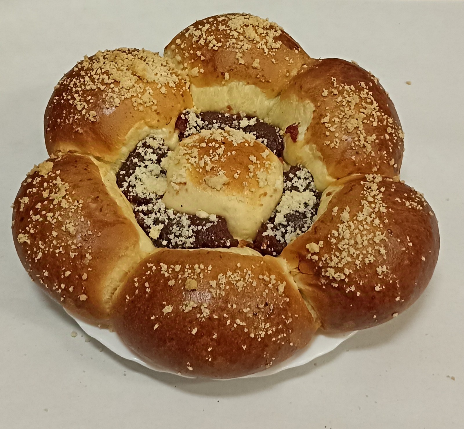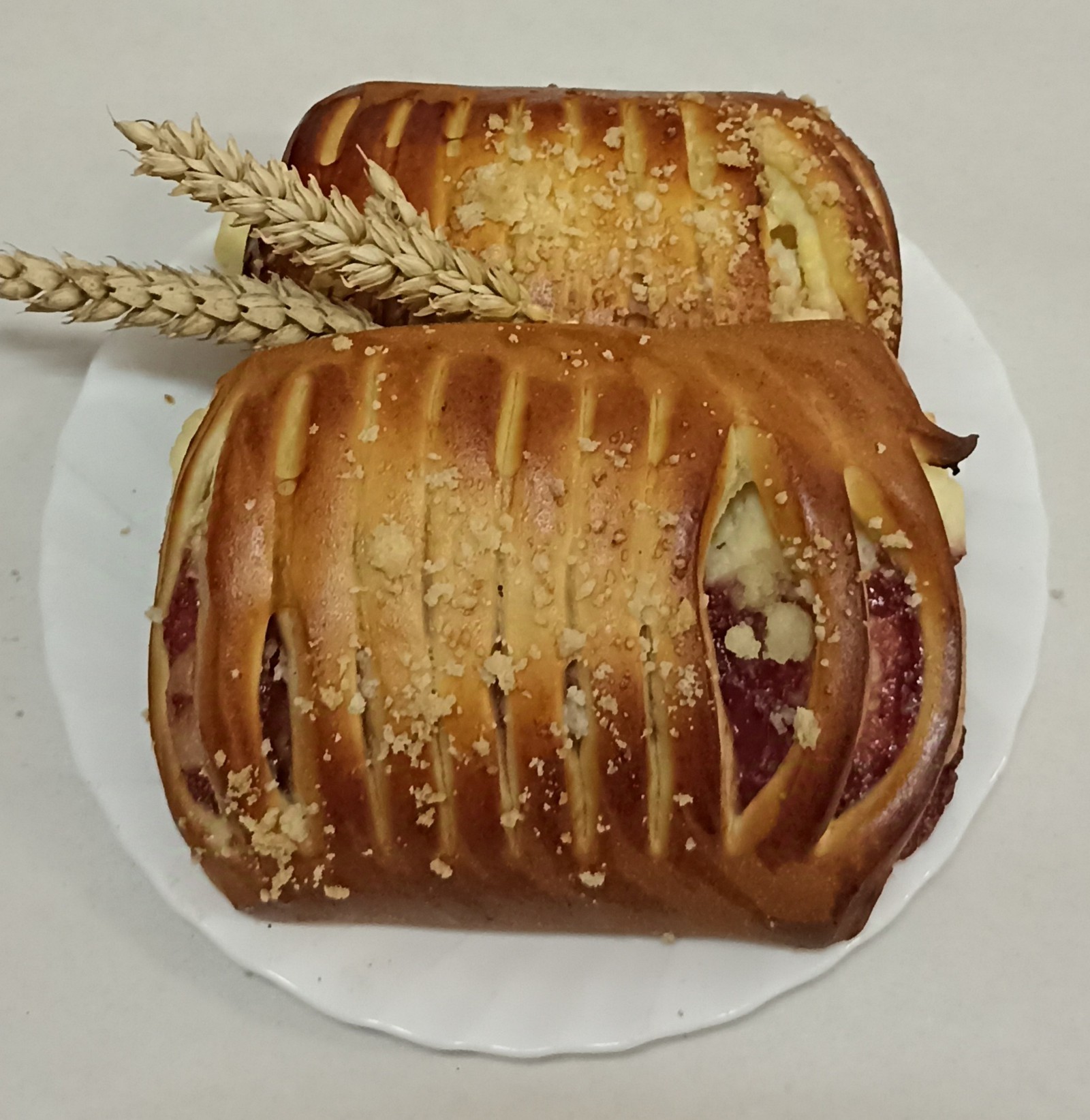 bułka słodka z serem i nadzieniem truskawkowym