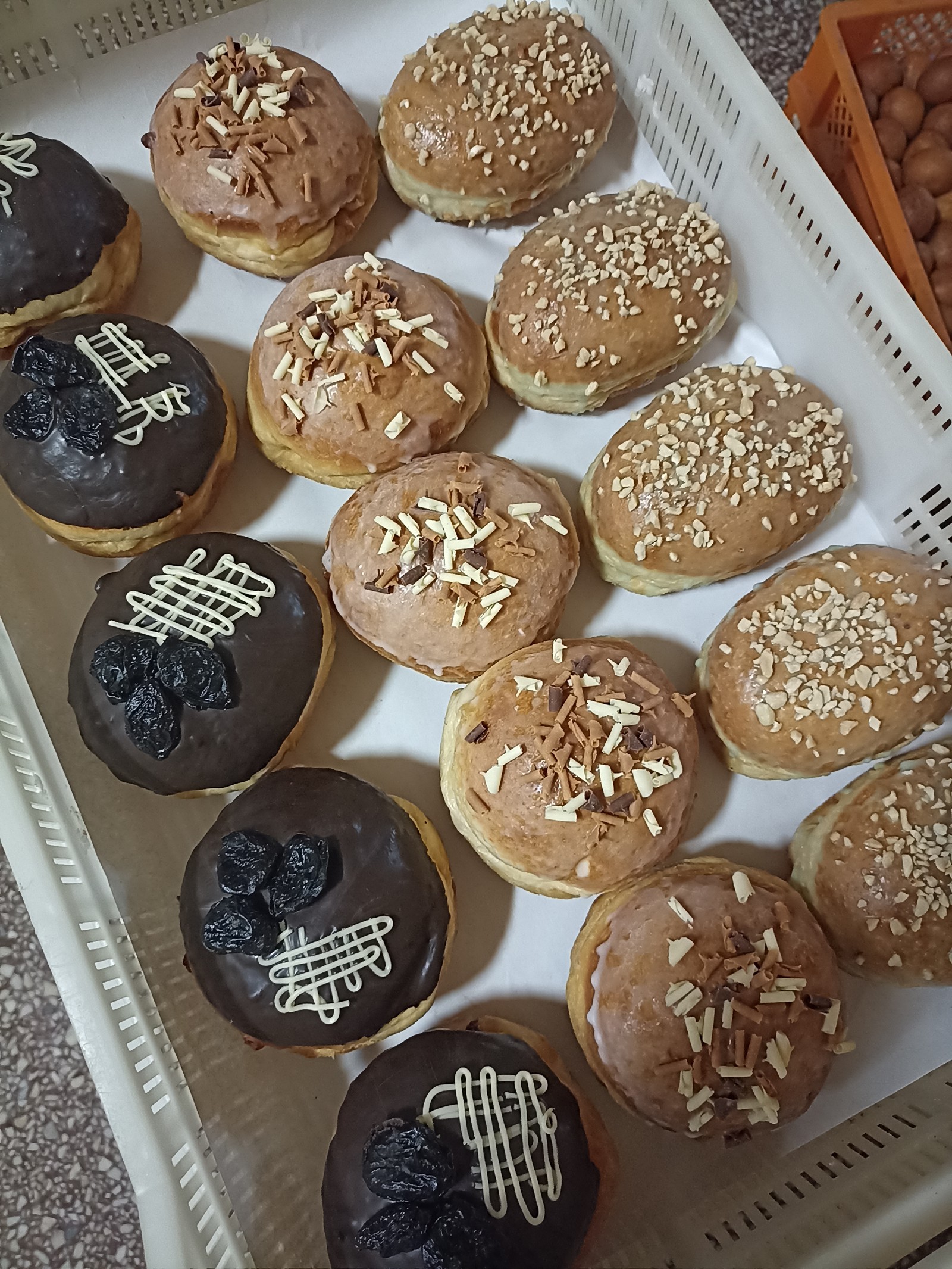 pączek z nadzieniem pistacjowym, toffi i śliwkowym