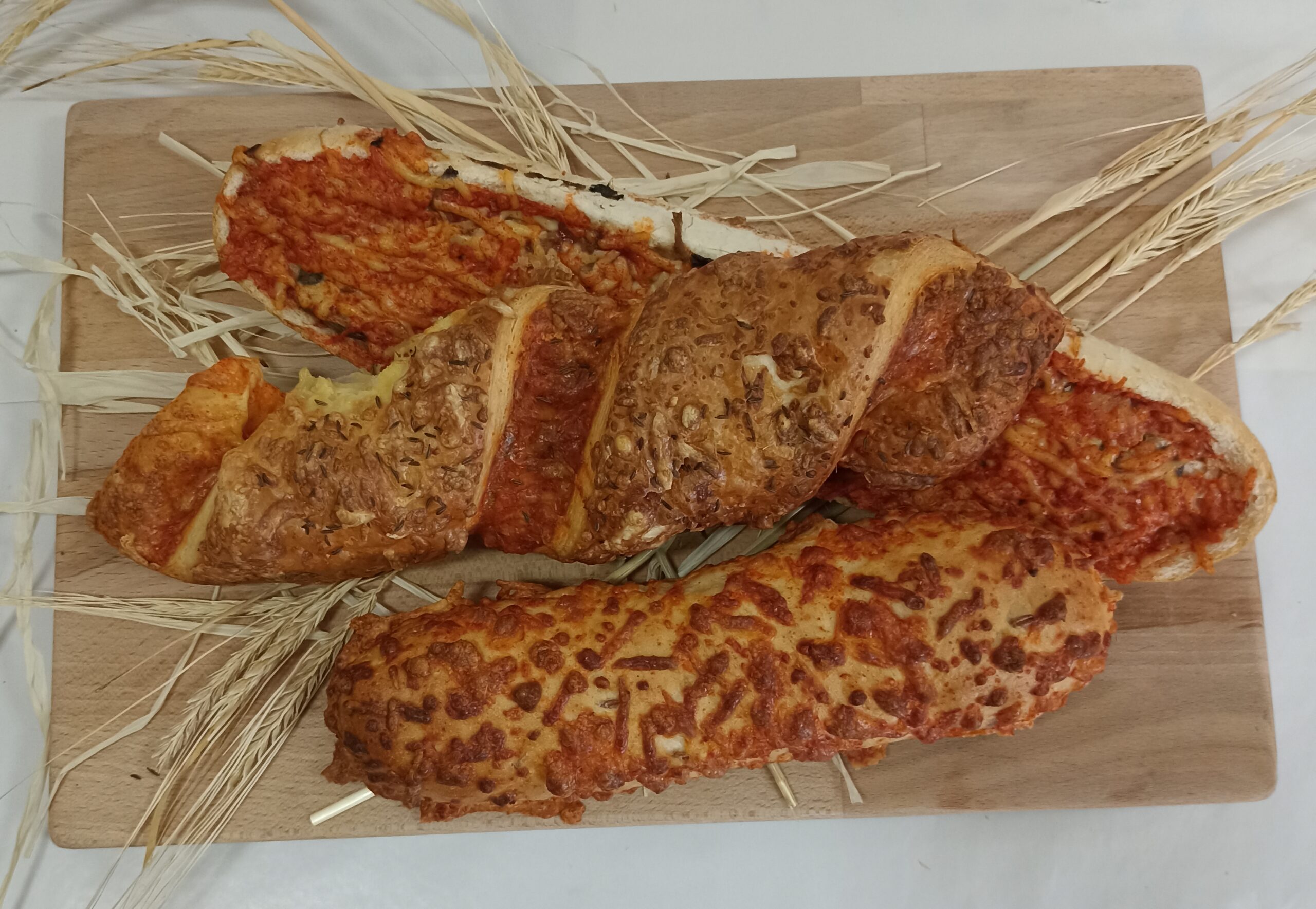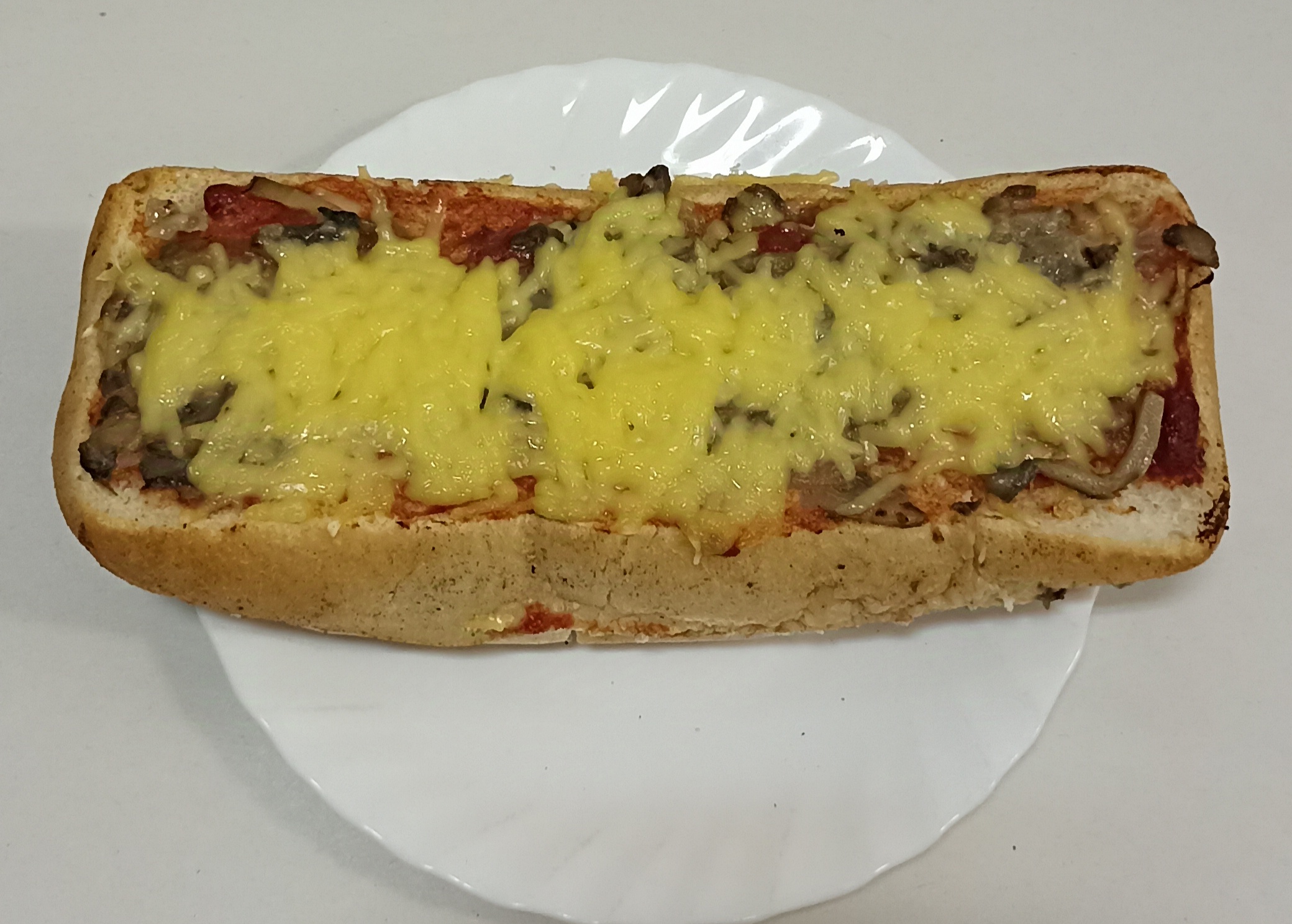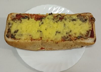 paluch pikantny, zapiekanka, paluch półfrancuski z serem